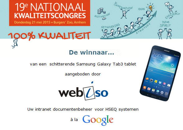 Ze mocht na alfoop van het congres de Samsung Tab3 tablet in ontvangst nemen.