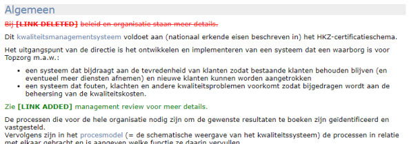 Editors and approvers in WEBISO have the possibility to have the changes visualized in color in each document with respect to the previous version. In this way, it is possible to check very quickly what exactly has been changed.